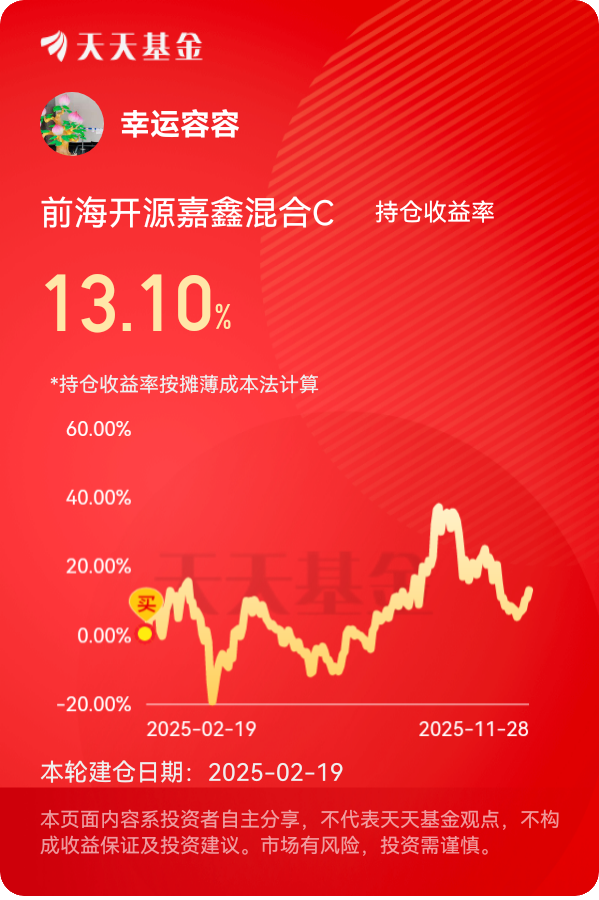 "投资机器人,就是投资人类对效率的永恒追求。" 这句话写在基金2025年年报的扉页,也刻在我的投资哲学里。在机器人浪潮奔涌的时代,前海开源嘉鑫混合C不仅是一只基金,更是一把打开未来之门的钥匙。真正的投资不是预测未来,而是与未来共舞。@前海开源基金 #晒收益#