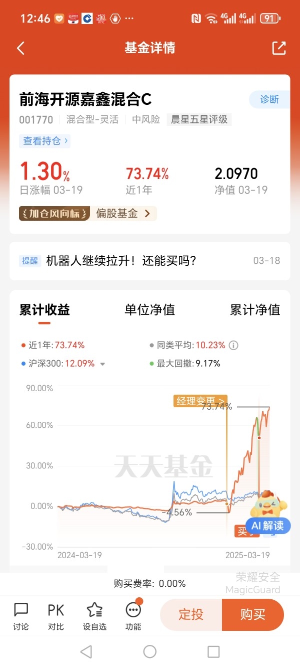 我在直播间第一次了解到前海开源嘉鑫混合基金。那天晚上,主播用专业而平实的语言分析了当前高端制造领域的投资机会,提到了这只由吴国清经理管理的基金。我被“灵活配置”“智能制造”这些关键词所吸引,这只基金通过债券底仓与权益资产搭配控制风险的理念。最初投入的五千元,第一个月就经历了8%的浮动亏损。那段时间,我几乎每小时都会刷新净值,焦虑地盯着手机屏幕上跳动的数字。身边有朋友劝我及时止损,说混合基金波动大,不如存银行稳妥。但我回想起基金经理强调“产业升级是长期趋势”,也注意到基金持有的公司基本面并未恶化,于是决定相信自己的判断。坚持定投成了我应对市场波动的法宝。我将每月工资的一部分自动设置为定投,净值高时买得少,净值低时买得多。这种机械式的操作让我摆脱了情绪干扰。在2024年10月市场大幅震荡时,基金净值一周内下跌7%,我非但没有停止定投,反而按照智能投顾的建议适当增加了投入。随后两个月的反弹证明了这个决定的正确性,我不仅收复失地,还创造了新的收益高度。真正让我对投资产生全新认识的,是深入研究基金重仓的机器人产业链的过程。我开始了解到基金投资的某家企业正在谐波减速器领域挑战国际巨头。我的关注点从每日净值波动,转向了所投企业的技术进展和行业地位。这种认知转变让我真正理解了“慢就是快”的长期投资哲学。如今,我的持仓收益已超过35%,但比数字更珍贵的是投资观念的成熟。我依然定期查看前海开源基金的财报和公告,对吴国清经理的选股逻辑和调仓思路有了更深的理解。作为持有人,我期待与嘉鑫基金一起,在中国制造业转型升级的浪潮中继续前行。
