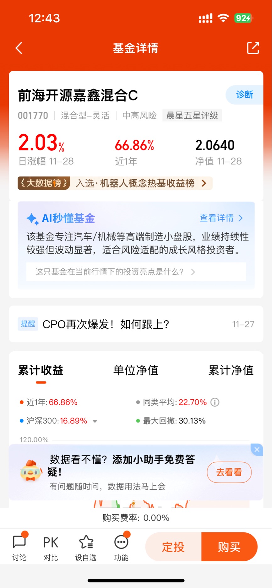 #11月基金投资策略# $前海开源嘉鑫混合C$ 我的智能投顾初体验:前海开源嘉鑫混合C的机器人投资之旅