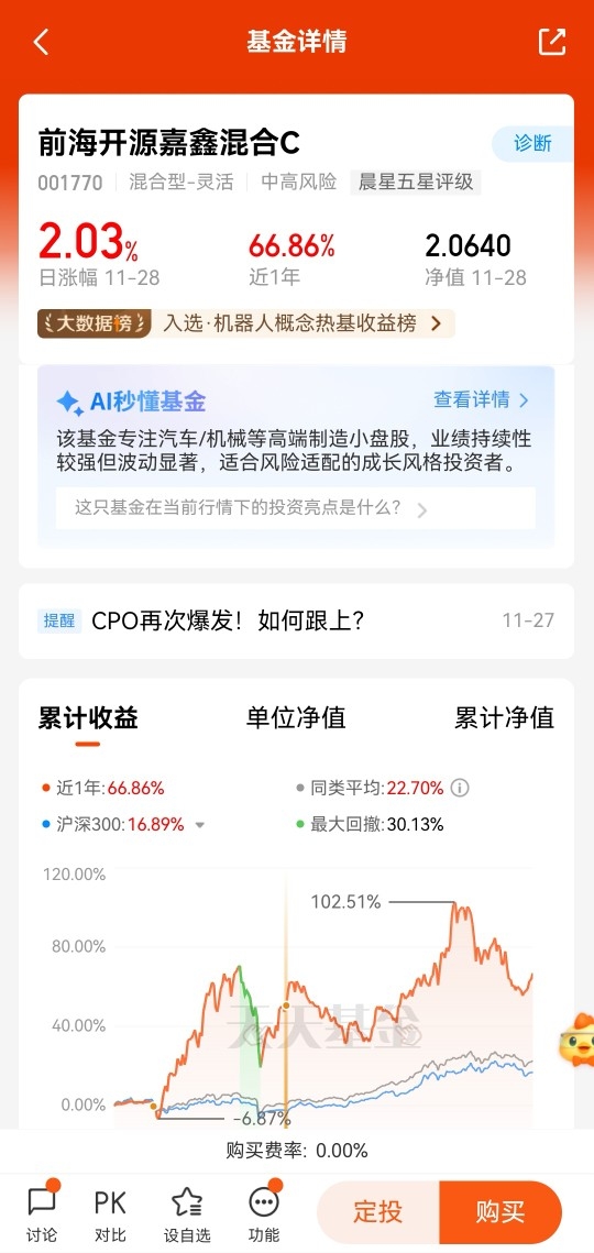 $前海开源嘉鑫混合C$ 聚焦机器人制造的关键环节,在今年的几轮机器人快速突破中都很好的承接了产业发展机会,如今经历了较为充分的回调,也为其带来了不错的投资布局点位,跟上产业政策集中的行业发展机遇进行投资,想来都是事半功倍的,这一次机器人行情,我们不应错过,积极低吸~@前海开源基金