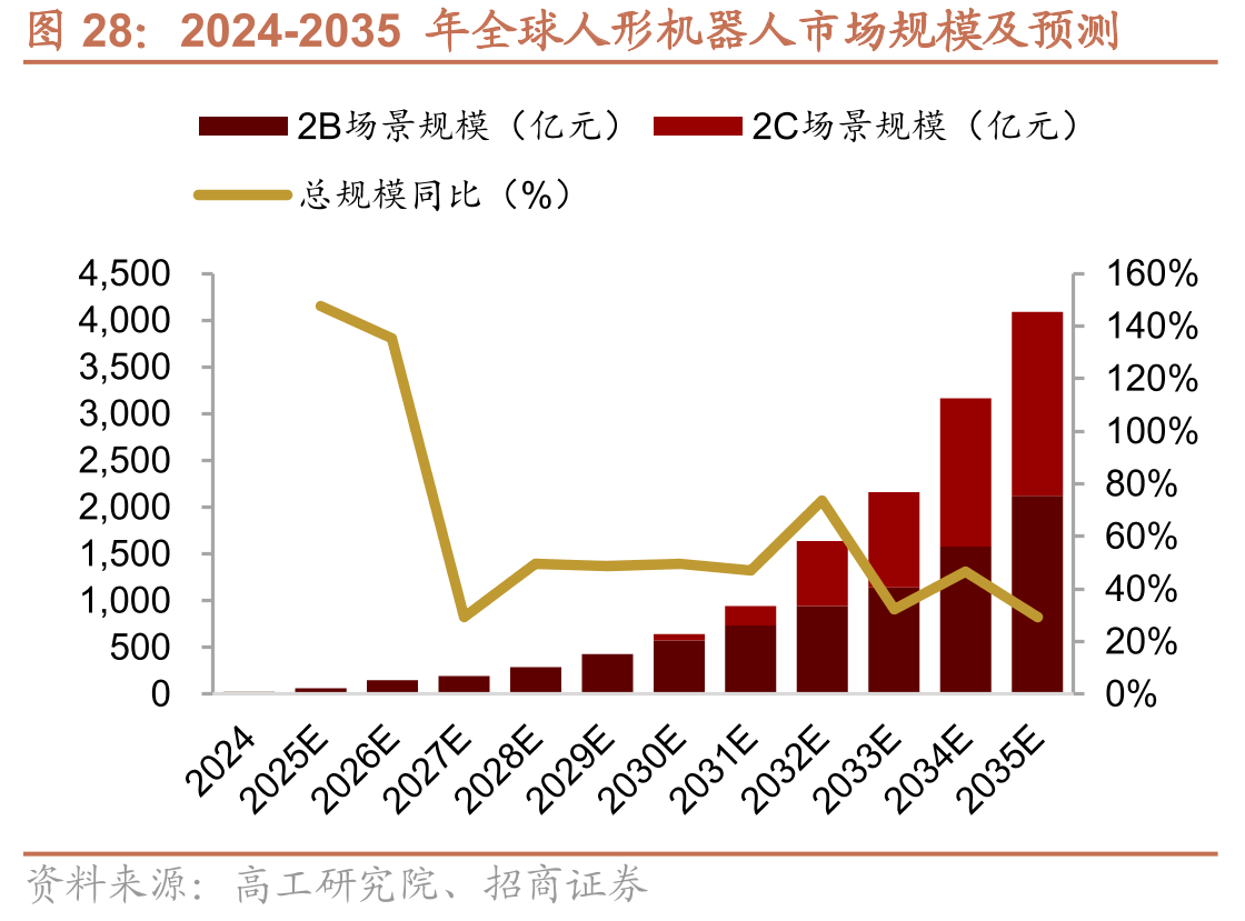 根据高盛(Goldman Sachs)最新修正的预测,人形机器人市场规模将在2035年达到1540亿美元(约合万亿人民币)。而在2025年这个节点,全球人形机器人出货量预计将突破2-3万台的临界点。