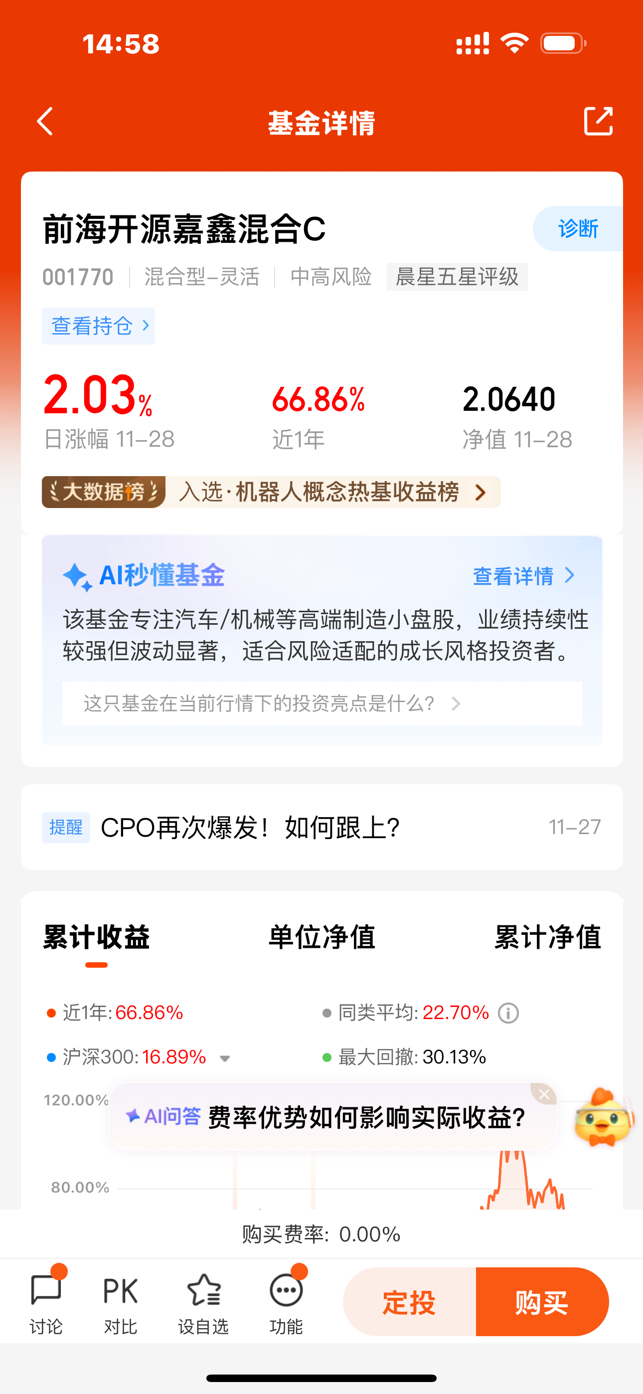 市面上机器人主题的基金不少,为什么我独独重仓了$前海开源嘉鑫混合C(OTCFUND|001770)$?这源于我对基金经理吴国清投资风格的长期跟踪与认可。