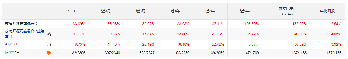 前海开源嘉鑫混合C基金在机器人板块的高波动环境中展现出显著的风险收益特征。近一年收益率达83.98%,显著超越同类基金平均水平。这种短期爆发力主要源于对机器人产业“政策+技术+需求”三重红利的精准把握,以及在产业从主题投资向盈利兑现过渡阶段对上游核心零部件的深度挖掘。