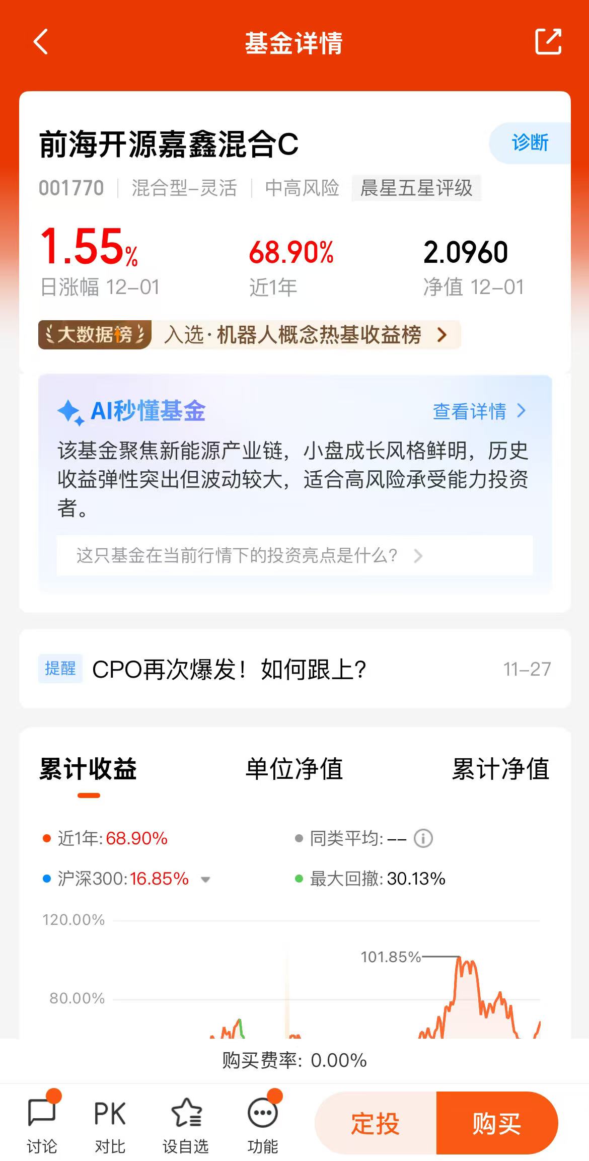 前海开源嘉鑫混合C基金在机器人板块的投资,不仅体现在对行业趋势的准确把握上,更体现在其精选个股的能力上。该基金通过深入的企业调研和专业的财务分析,成功挖掘出了多家具有成长潜力和投资价值的机器人企业。同时,基金管理团队还注重风险控制和资产配置的优化,确保投资者在享受高收益的同时,也能有效降低投资风险。