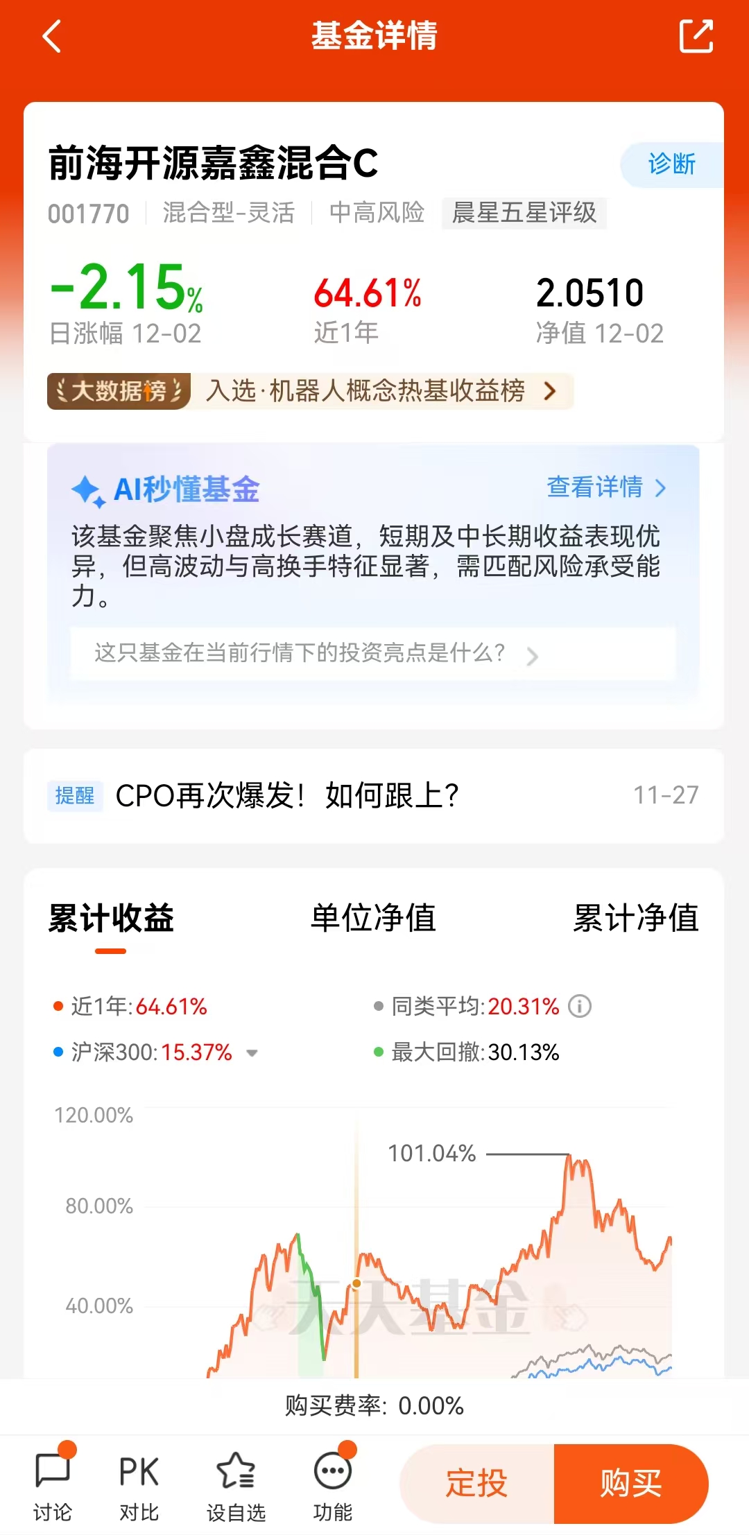 近期,前海开源嘉鑫混合C基金的净值实现了显著增长,特别是在人形机器人板块热度高涨的背景下,基金净值涨幅较大,为投资者带来了可观的收益。从近三年的业绩表现来看,其累计收益率稳居同类基金前列,展现出了较强的盈利能力。