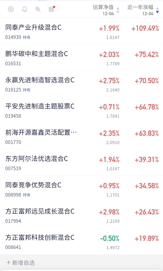 同泰竞争优势混合C(008998) 涨 +0.95%