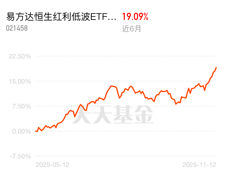 全球经贸环境复杂,市场波动加大,能抗跌又有收益的资产不好找,港股红利低波板块算是佼佼者。易方达恒生红利低波联接C近6个月涨了19.09%,费率在同类里处于低位,对比富国、摩根、天弘的相关产品更有优势,值得入手。