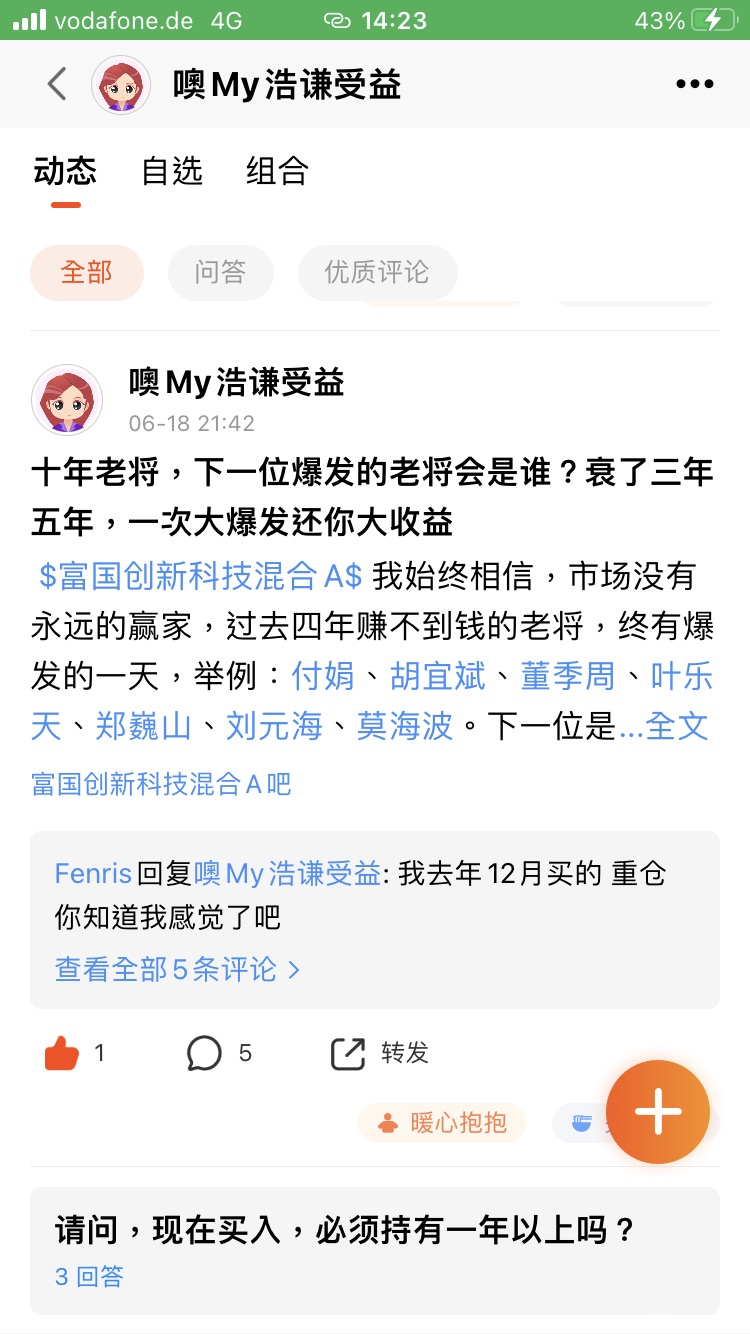 $融通中国风1号灵活配置混合A/B[001852]$ 我始终相信,市场没有永远的赢家,过去四年赚不到钱的老将,终有爆发的一天,举例:付娟、胡宜斌、董季周、叶乐天、郑巍山、刘元海、莫海波。下一位是谁?