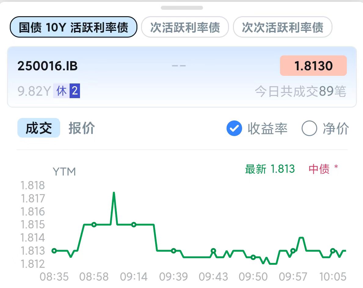 十年期国债收益率:1.831%,+0BP(国债收益率越跌,债市越涨)