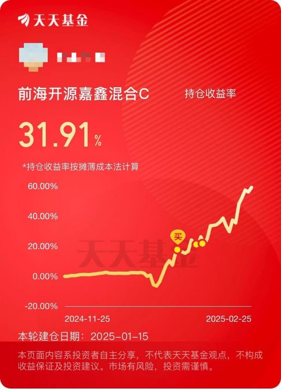 这收益曲线45度向上,真后悔没多买!$前海开源嘉鑫混合C$