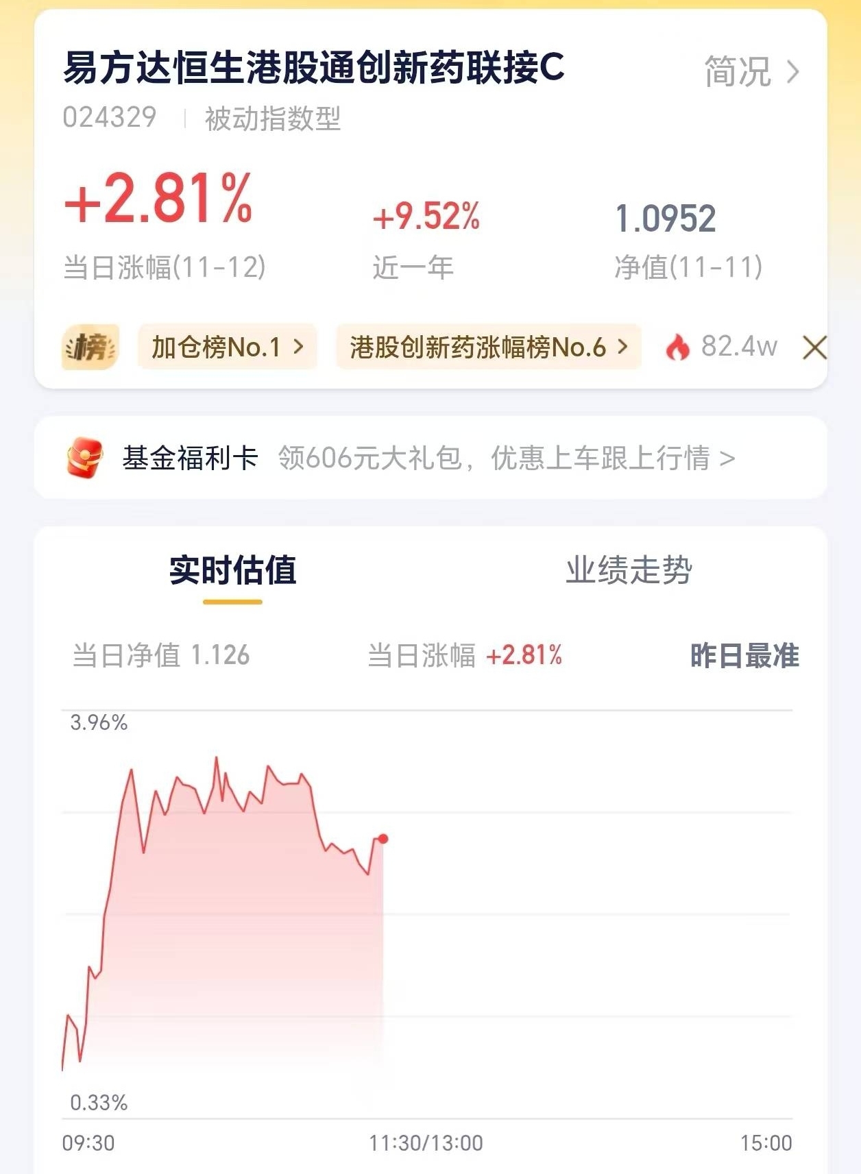 国产创新药临床数据表现优异,获批速度加快,市场信心提振,港股板块强势反弹。易方达恒生港股通创新药ETF联接C创新药含量100%,不掺杂其他业务,业绩随获批进程稳步提升。