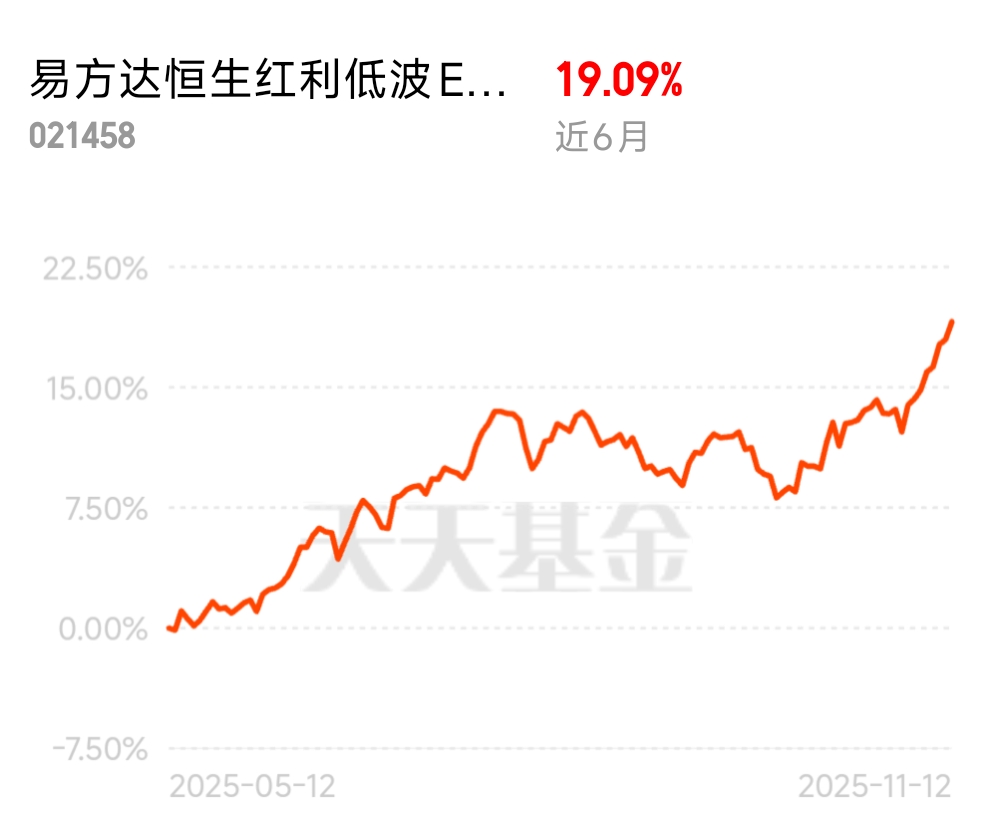 全球经济环境复杂,市场不确定性增多,能稳健赚钱的资产越来越少,港股红利低波板块算是惊喜。易方达恒生红利低波联接C近6个月涨了19.09%,费率对比摩根港股通低波红利、富国恒生红利等产品更有优势,低费投资很靠谱。