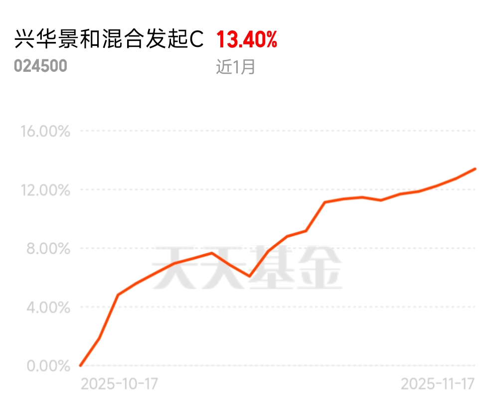 兴华景和基金成立以来收益率 27.43%,位列同类前列。昨天大盘下跌,它逆势净值增长 0.58%,十二连涨延续,投资特色很鲜明,注重小微盘价值股的商业模式韧性,以深度研究为导向,持仓集中且目标明确。$兴华景和混合发起C$