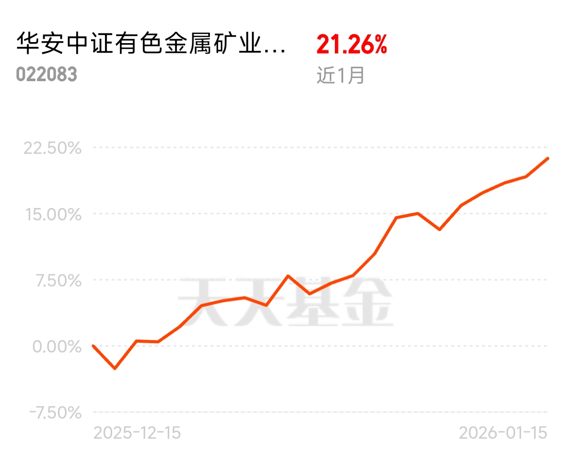 $华安中证有色金属矿业主题指数发起式A$涨势喜人,近月涨21.26%+近1年收益