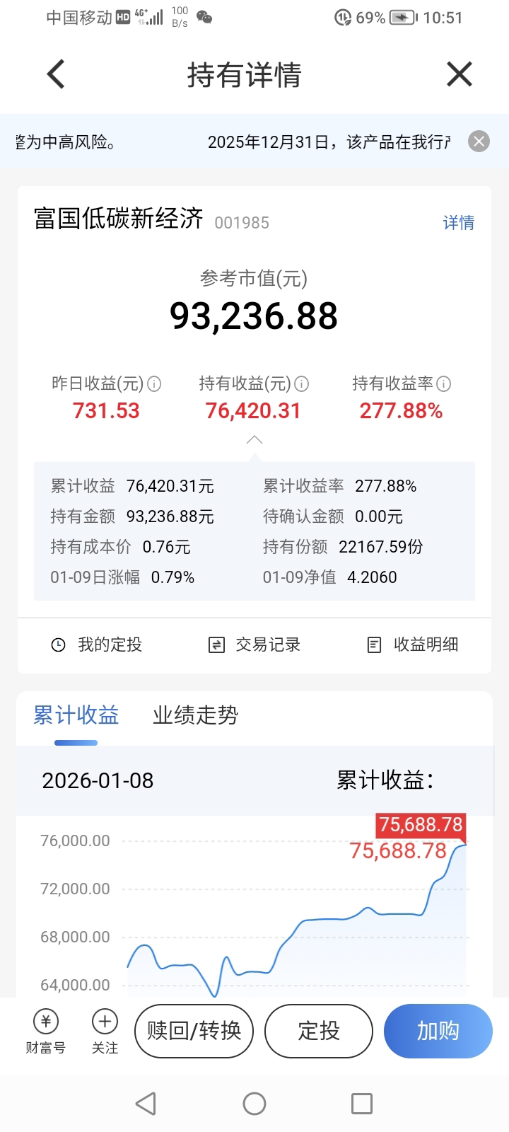 看看我买的富国低碳新经济混合A走得很不错