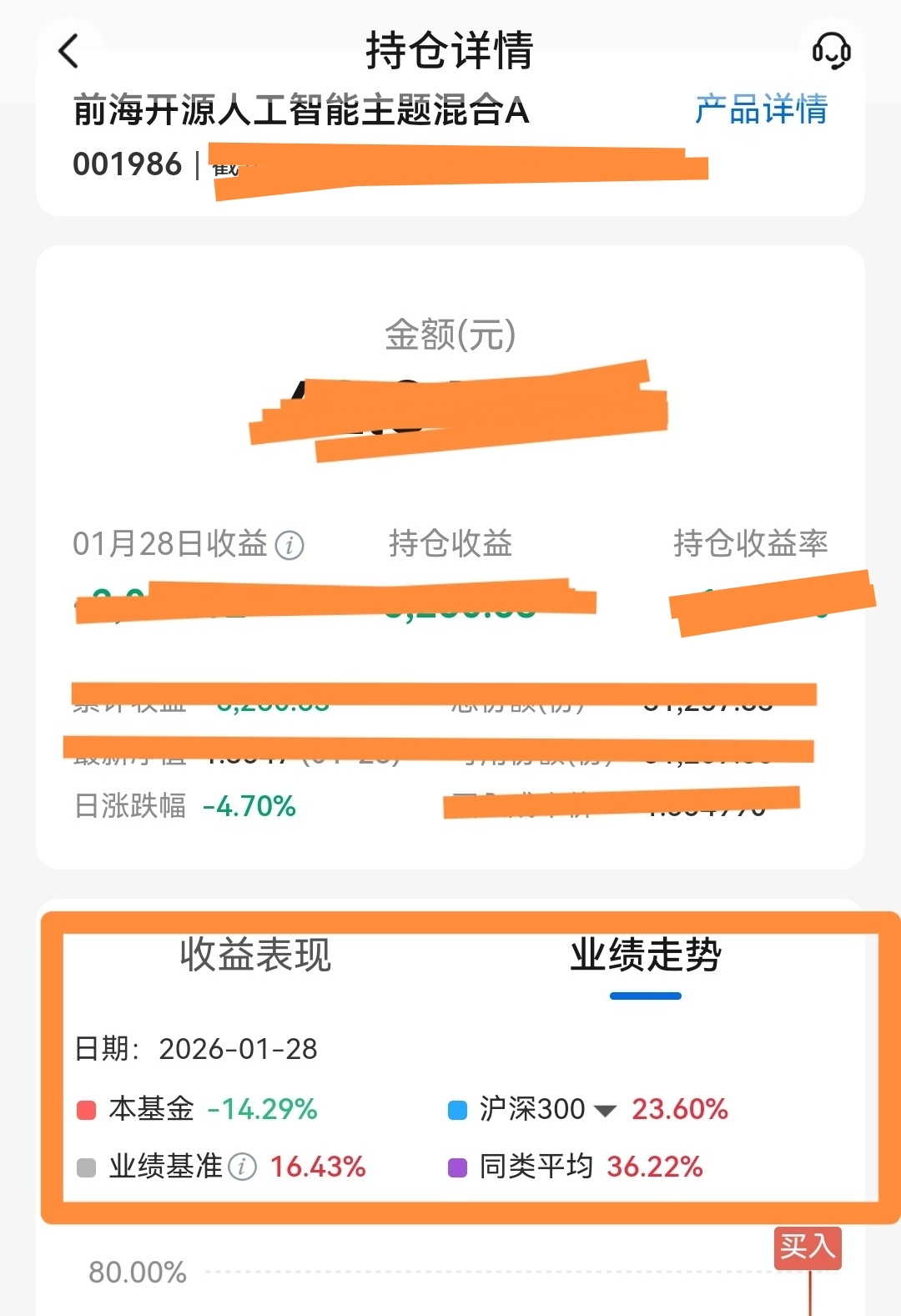 $前海开源人工智能主题混合A(OTCFUND|001986)$ 截止2026.1.28,该基金比业绩基准低30.72%,这样的基金还能活着,还能收管理费,奇葩了