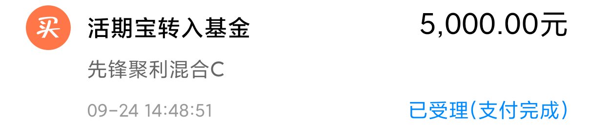 加仓买进5000的 $先锋聚利混合C(OTCFUND|004834)$