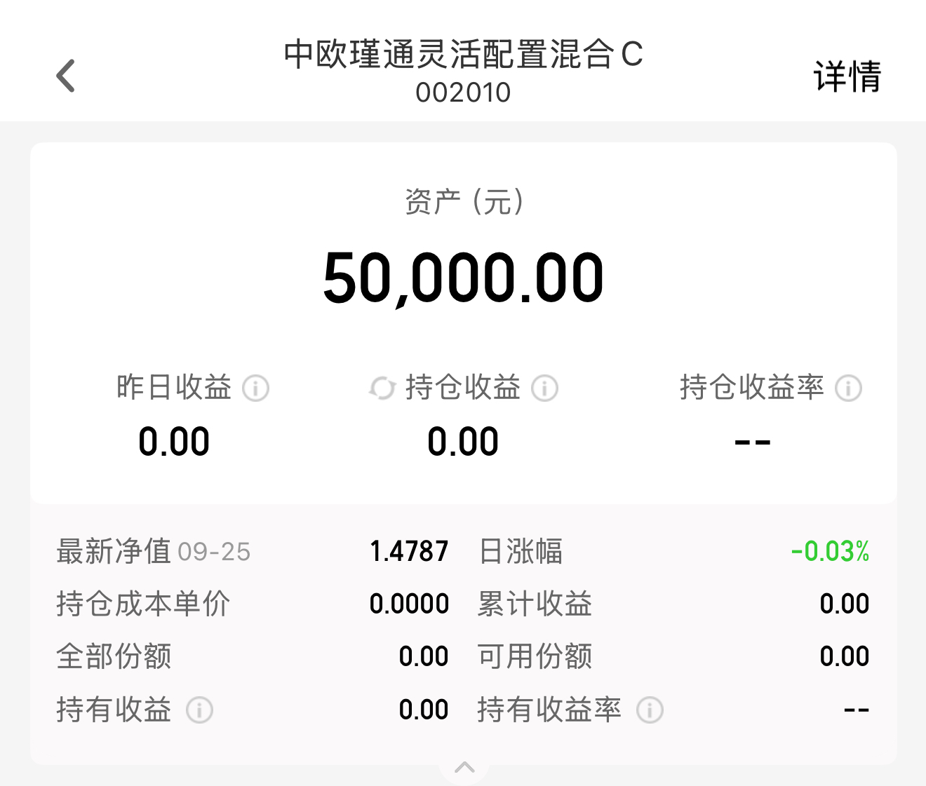 加仓$中欧瑾通灵活配置混合C(OTCFUND|002010)$ 50000元!