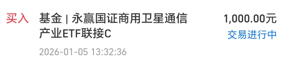 今天我买入$永赢国证商用卫星通信产业ETF发起联接C(OTCFUND|024195)$1000块钱。