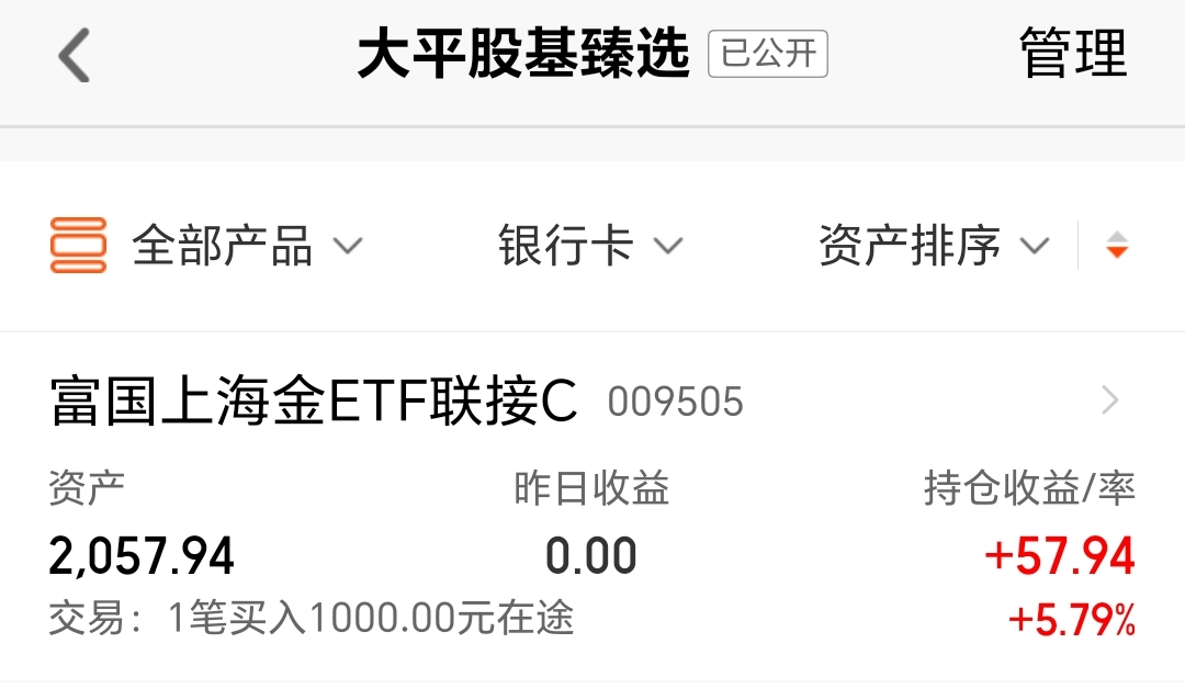 今天我买入$富国上海金ETF联接C(OTCFUND|009505)$1000块钱。