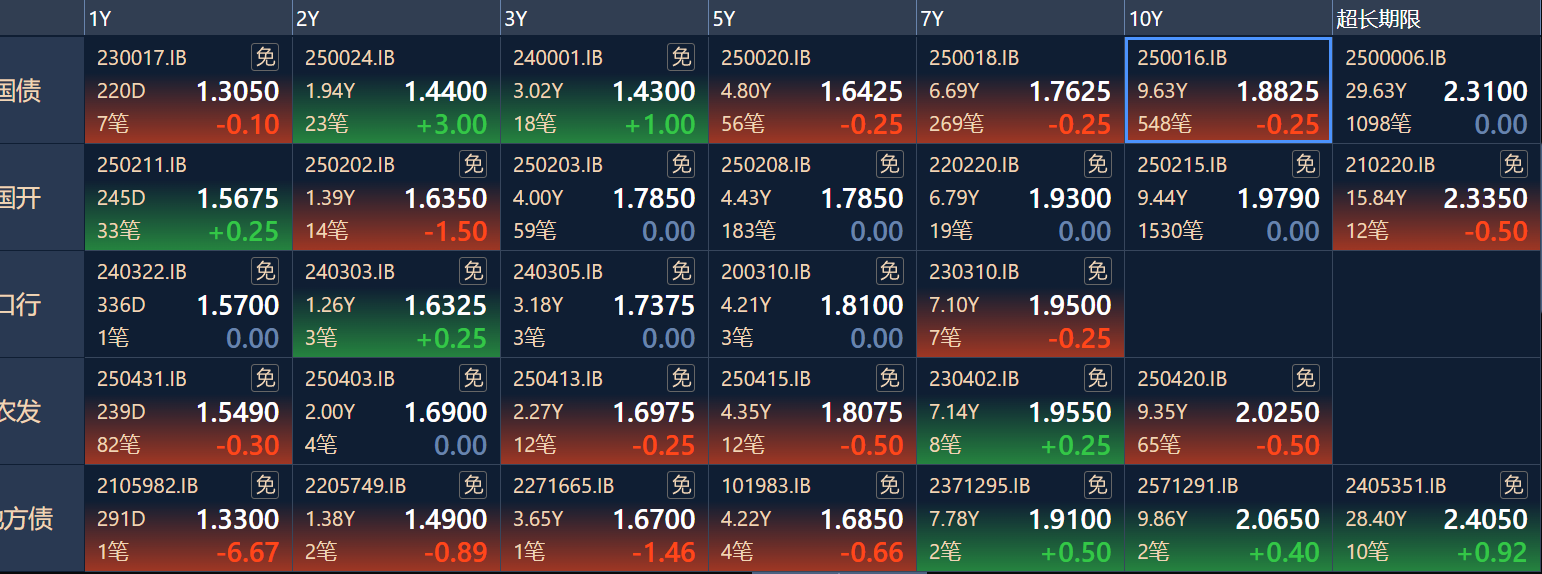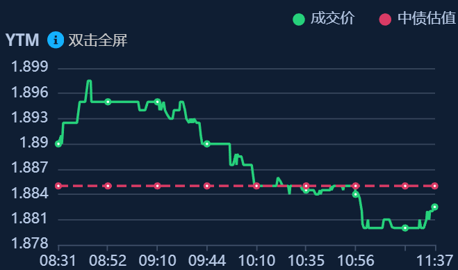 二、十年期国债收益率:1.8825 -0.0025%(国债收益率越涨,债市越跌,两者反向关系)