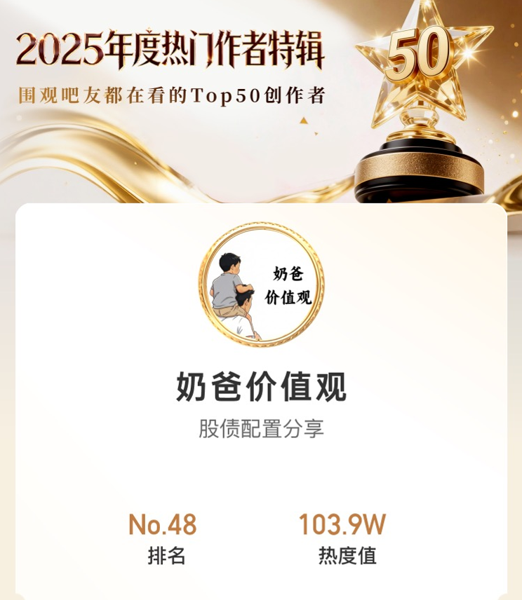最后,本周天天基金发布了2025年度热门创作者Top50,我上车了!感谢各位基友的青睐和支持!以及平台提供的和大家交流沟通的机会!