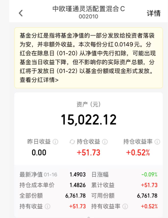 今日股债面对新数据出炉的时候,延续了近期各自的趋势,固收+来应对虽不如梭哈股票来的有盼头,但稳稳幸福更容易拿捏。产品我刚开始加仓不久,收益率0.52%,我持仓的中欧产品里仅次于他们最近欣欣向荣的中欧可转债。