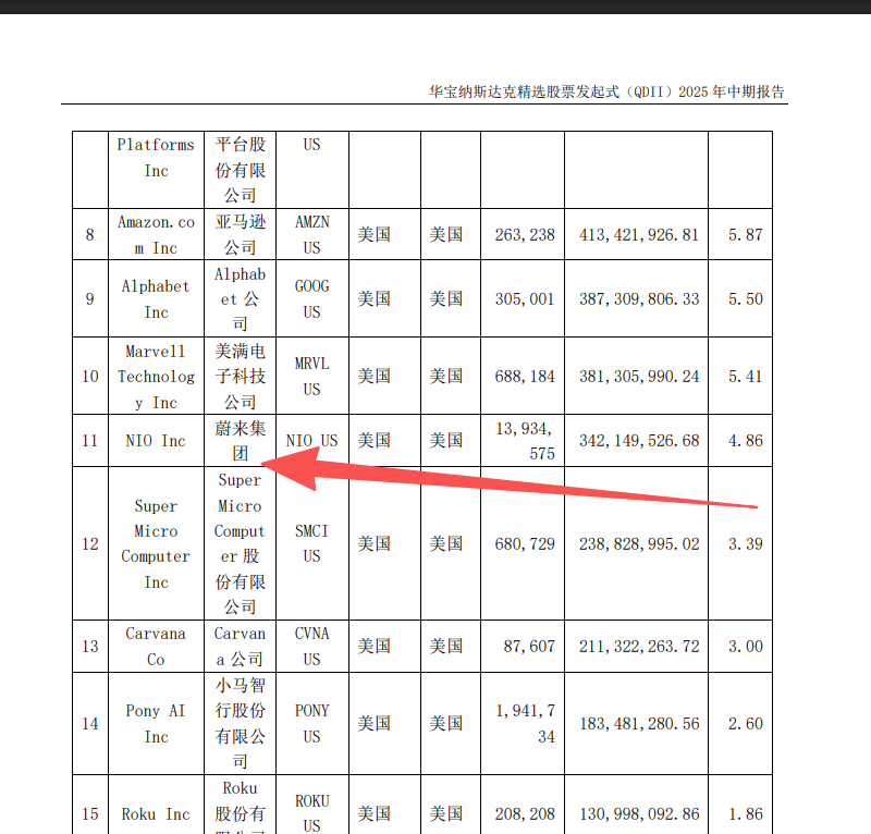 这只我持仓了小几百,一直在保持定投。但走势一直略弱于纳斯达克指数。看到新闻才去查阅定期报告,中期报告11位确实是蔚来,也确实拿了不少中概股。
