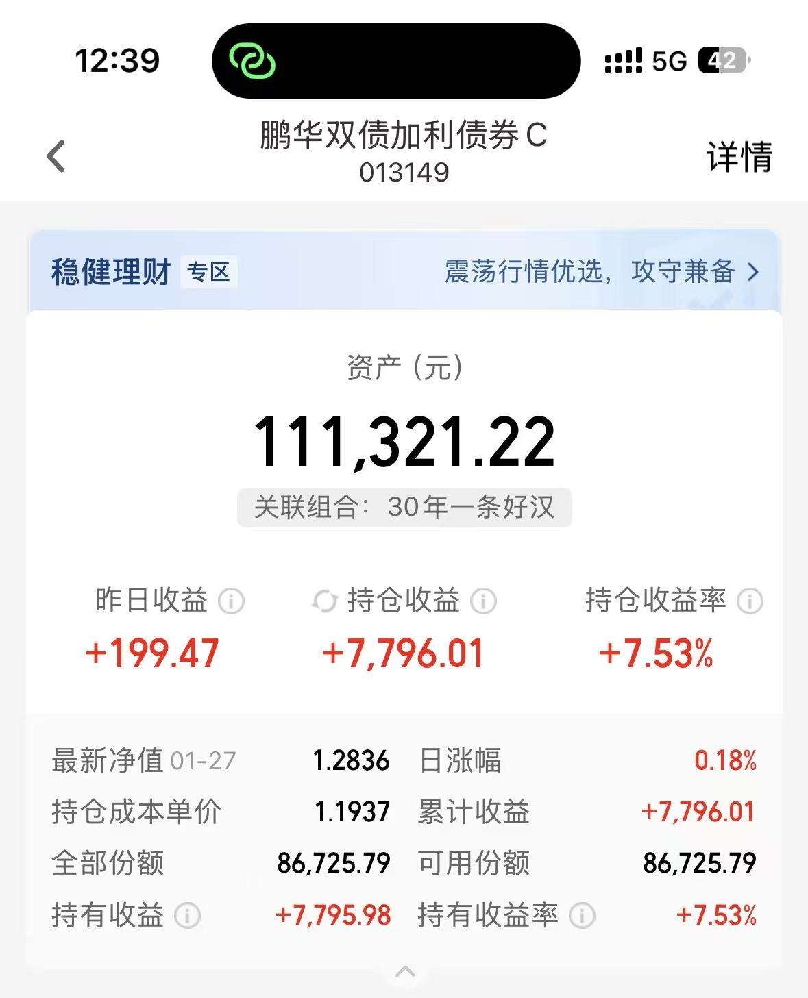 目前持仓收益1.07%,刚持有不到一个月,作为一只权益持仓占比并不大的固收+,表现非常不错了。追涨了也不怕,我继续加仓。