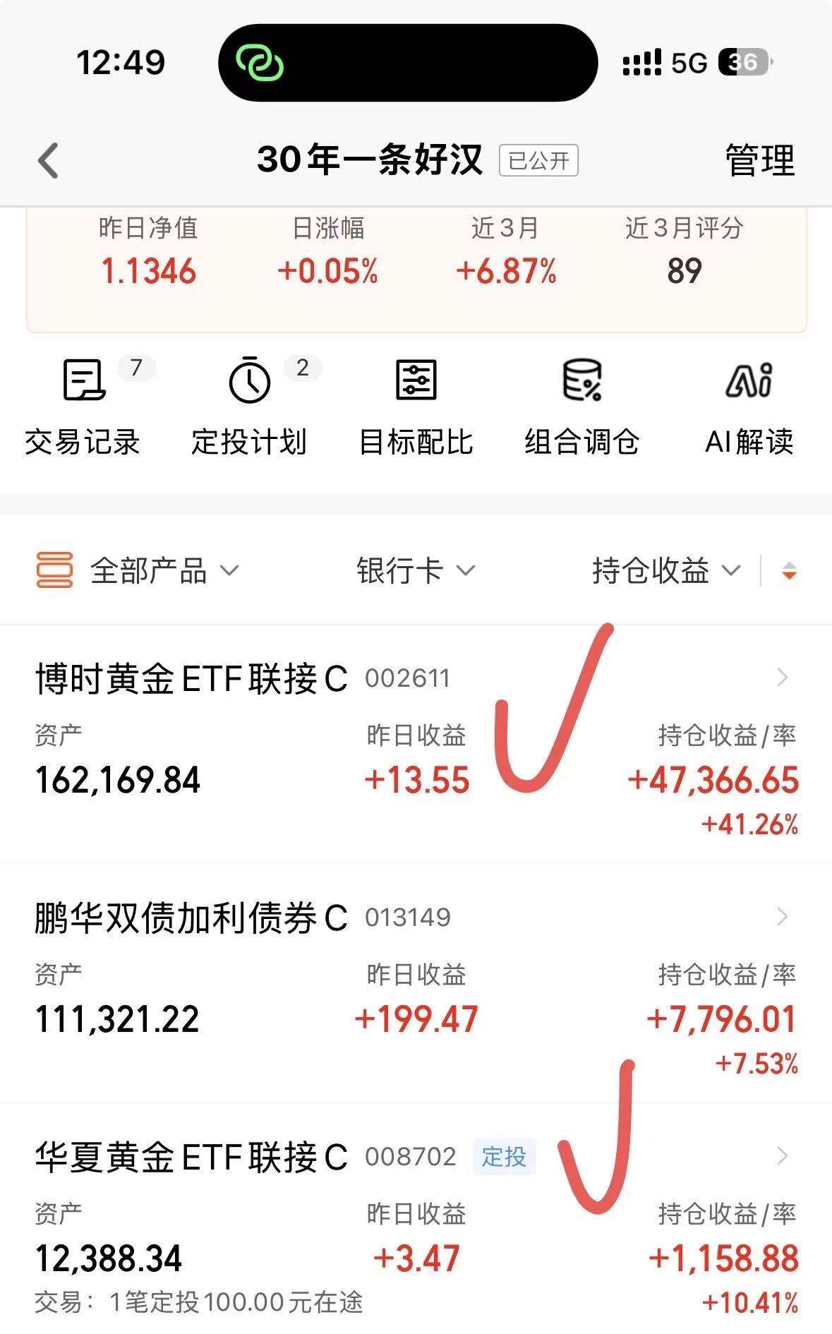 说实在黄金从去年末开始就纠结,一直等回调,结果脸快被打红了,都没等到(昨天以为是个小回调,结果净值出来还赚了几十)。