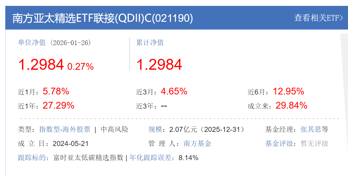海外QD权益:南方亚太精选C+1000 $南方亚太精选ETF联接(QDII)C(OTCFUND|021190)$