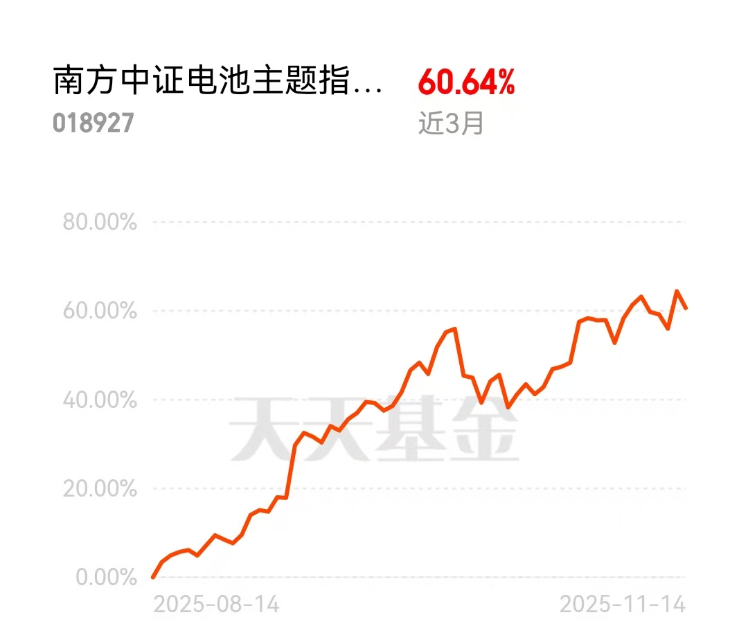 新能源这波行情,主角就是电池!储能需求爆了,电动车渗透率提升。$南方中证电池主题指数发起C$(018927)近六个月涨83%,今年来75%,走势一条斜线往上。它的持仓聚焦电池龙头,固态电池相关权重高,技术突破直接受益。行业从“发电”转向“发电+消纳”,储能配比上升,电池需求打开第二增长曲线。周期反转+技术催化,这基双重驱动。别看过去涨得多,行情才刚起步,基本面拐点确认了。#科技小登大揭秘#