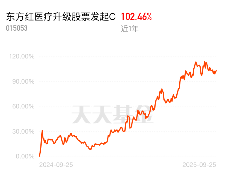 今年以来医疗行情真挺不错的,感觉下半年还仍旧可期,东方红医疗升级近一年收益102