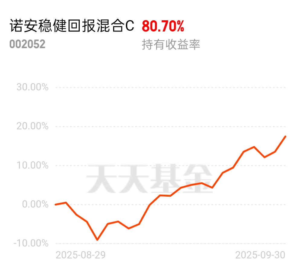 $诺安稳健回报混合C$今天看着好像还在涨啊,这是奔着100%去了。最近这个数据还