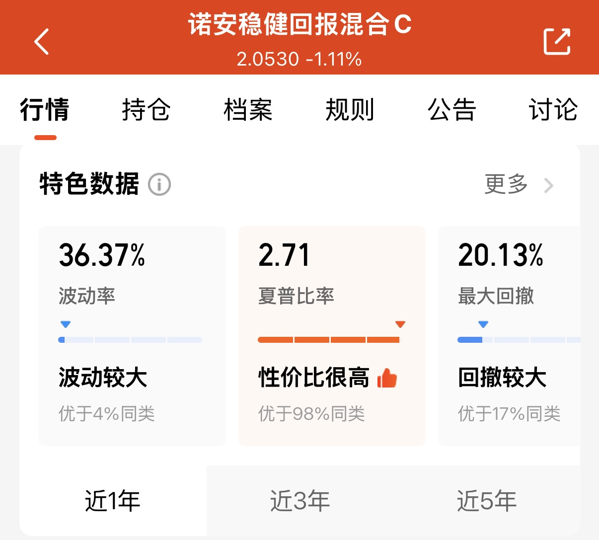 简单来说,一篮子定价合理的科技股,本身就有更强的回撤韧性。因此,诺安稳健回报近1年最大回撤控制在20.13%,夏普比率高达2.71,性价比非常高!