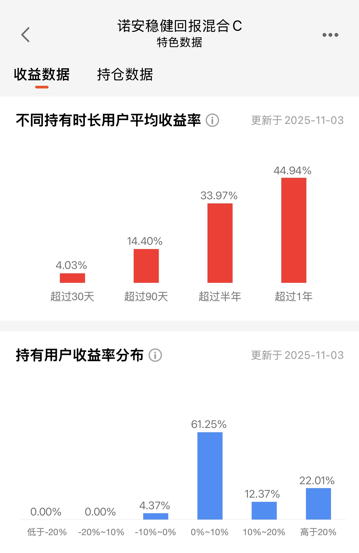 两个关键词概括:在管基金全红,诺安稳健回报收益翻倍。