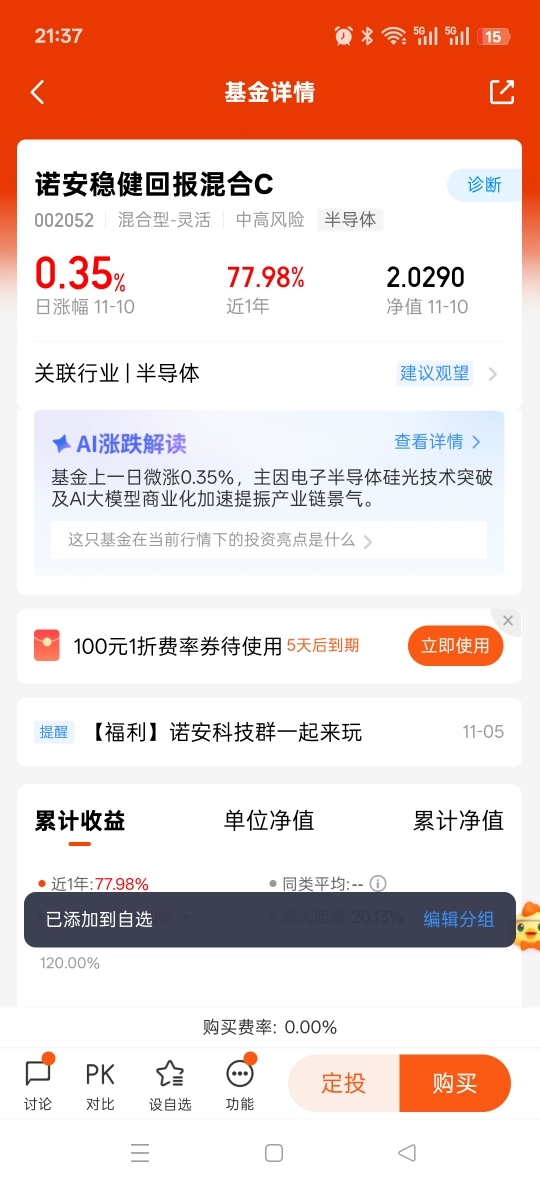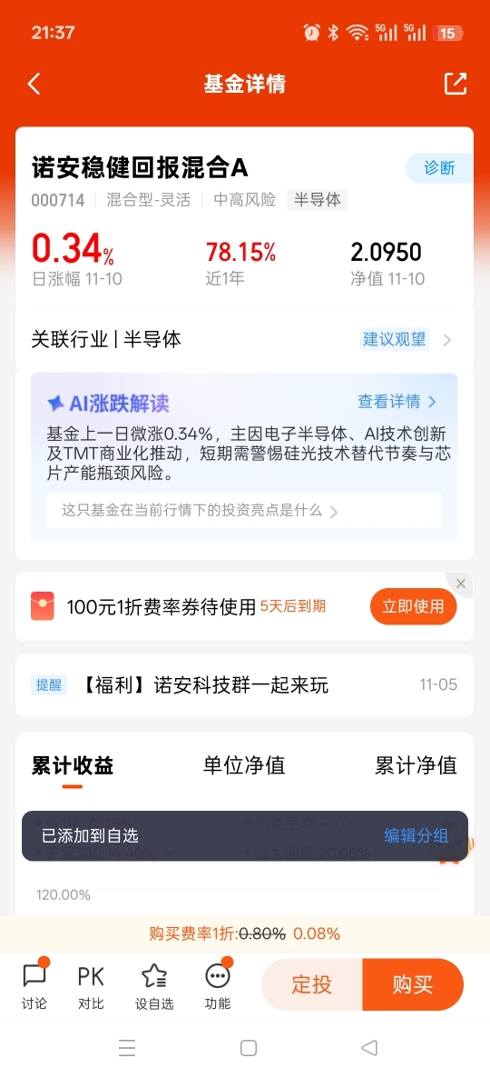 诺安稳健回报能在同类基金里排前1%,持仓里的芯原股份、中际旭创又刚好是AI产业链的核心标的,今天已经把它加自选了,打算后续跟踪它在AI应用端的布局节奏,毕竟当前AI的产业落地节奏越来越清晰,这条赛道的长期机会值得关注~