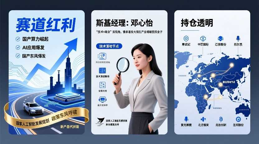 - 基金经理:邓心怡的“技术+商业”双视角,像拿着放大镜在产业褶皱里找金子;