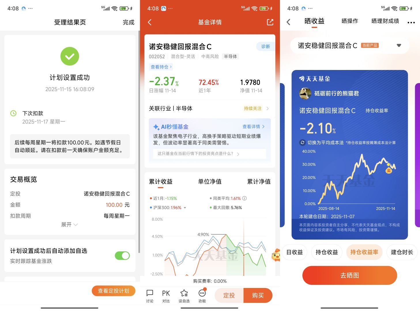 买入诺安稳健回报C时,我像抓住救命稻草般定投100元/周。但市场总爱开玩笑: