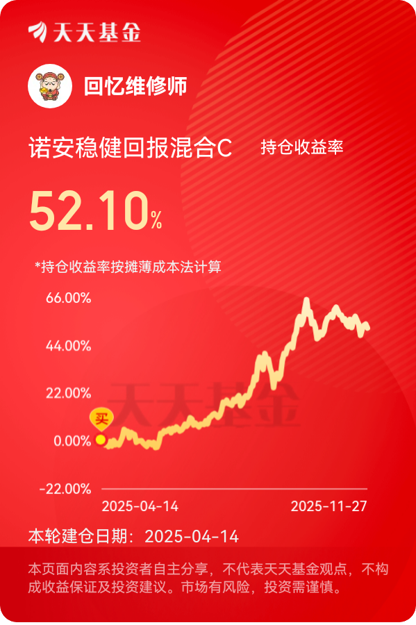 所以我提前布局了诺安稳健回报混合C(002052),因为邓心怡基金经理的投资经验相当丰富,她对于人工智能行业的研究相当深入。@诺安基金