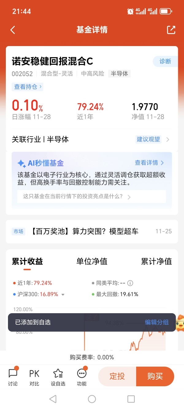 所以我持有的是诺安稳健回报混合C(002052),因为诺安基金是老品牌,值得信赖。@诺安基金