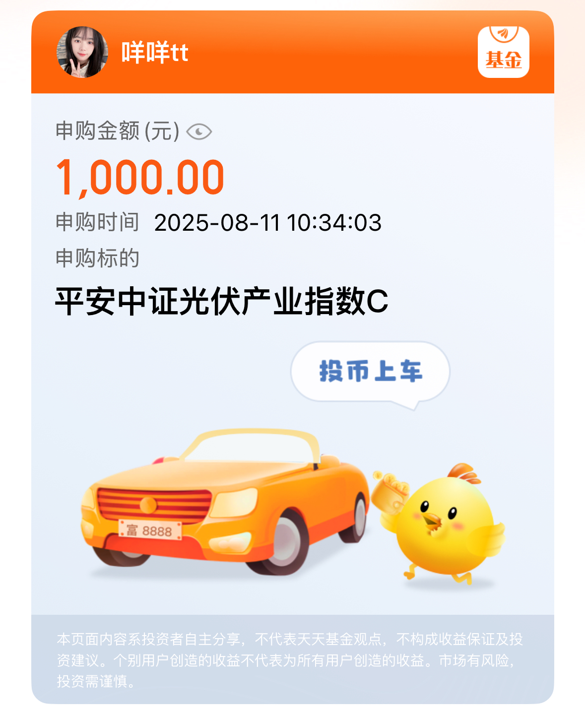 我加1000元$平安中证光伏产业指数C(OTCFUND|012723)$