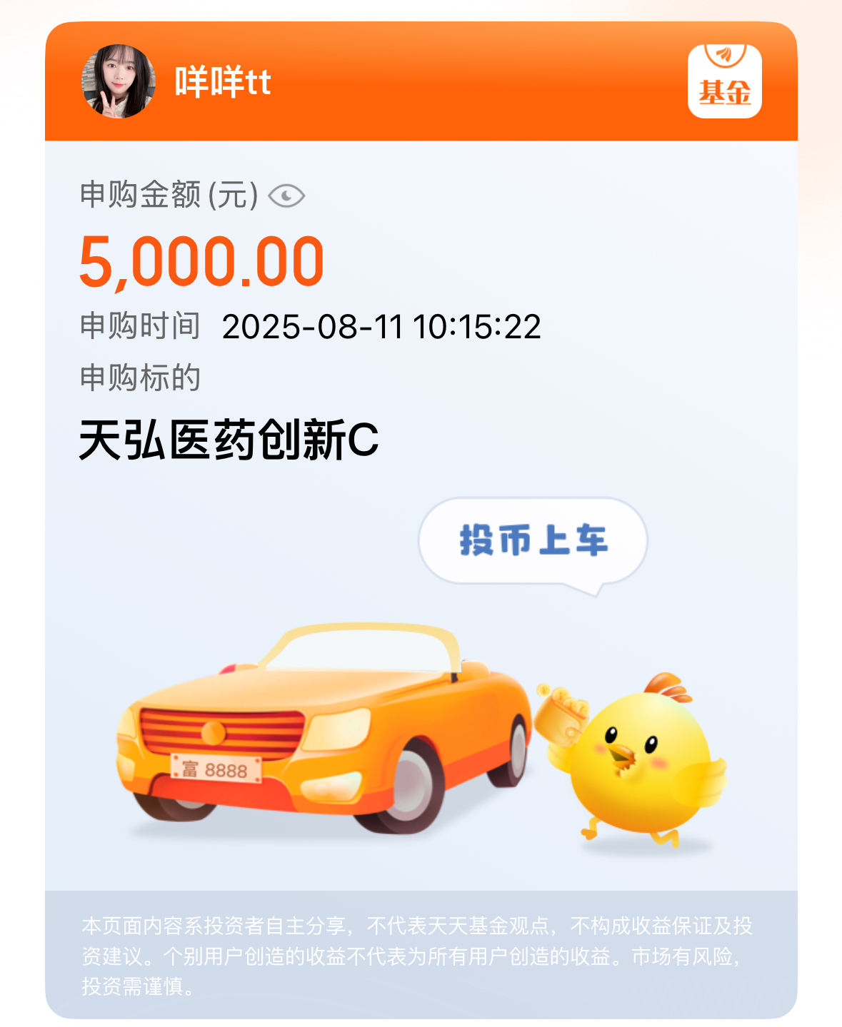 我加5000元 $天弘医药创新C(OTCFUND|010655)$