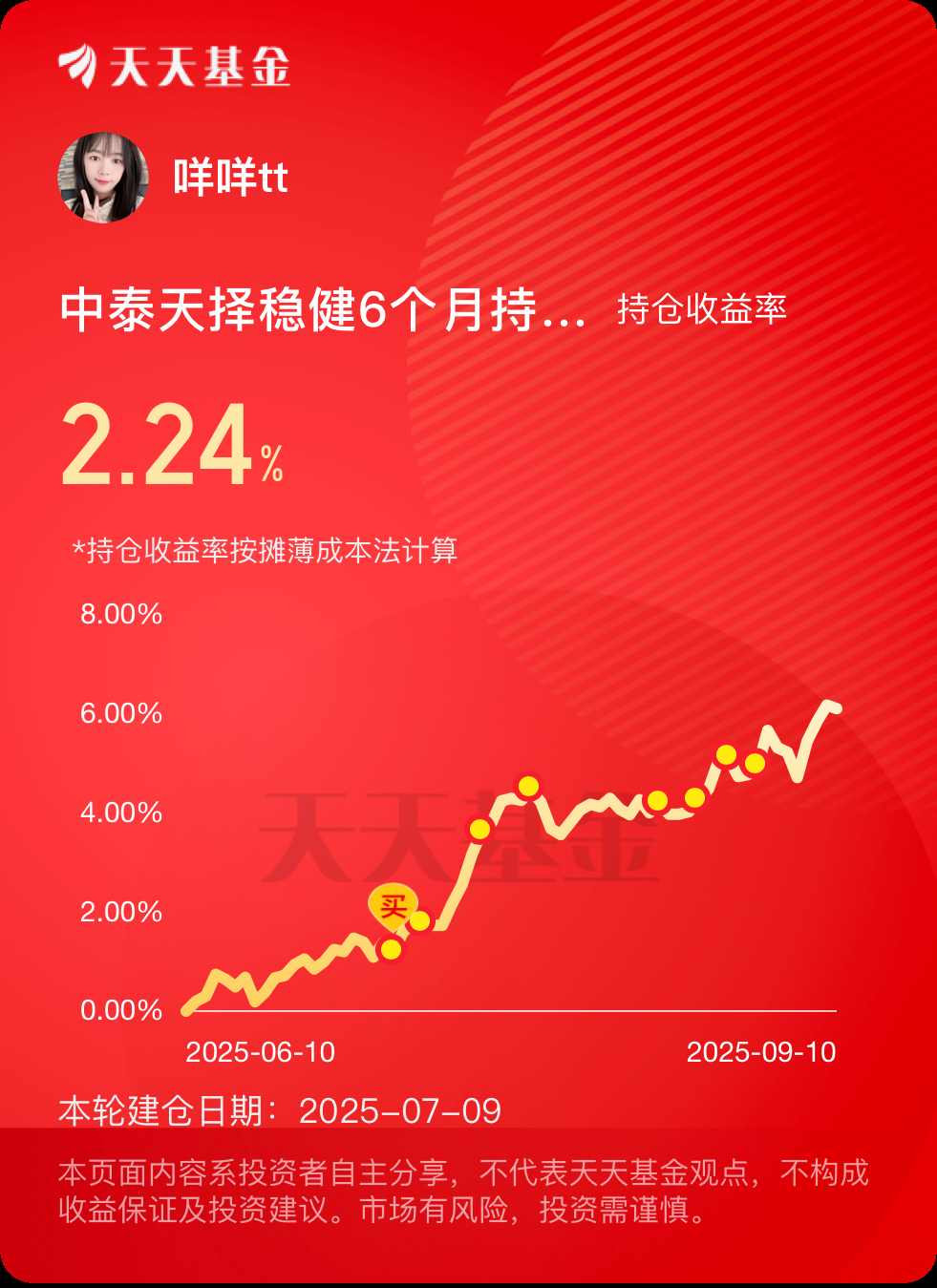 我加2000元 $中泰天择稳健6个月持有混合(FOF)A(OTCFUND|017589)$