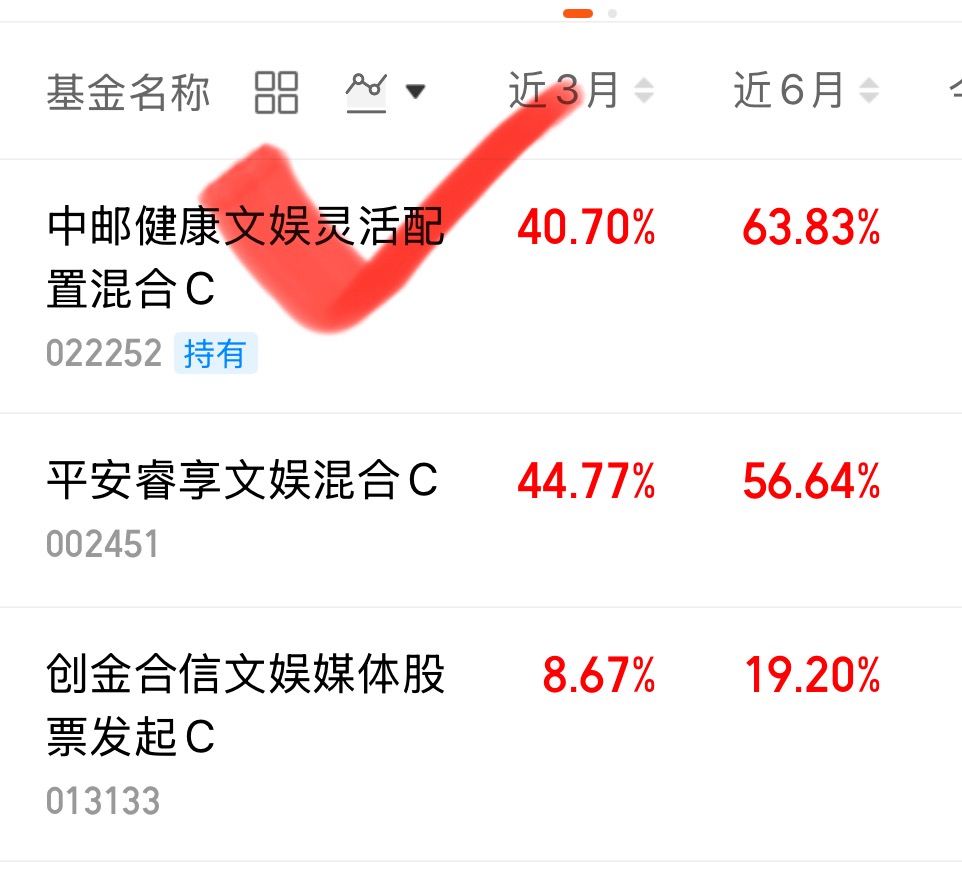 必须夸自己选基金厉害!$中邮健康文娱灵活配置混合C$ 半年涨63%,比别的同类基金好很多,太惊喜了。