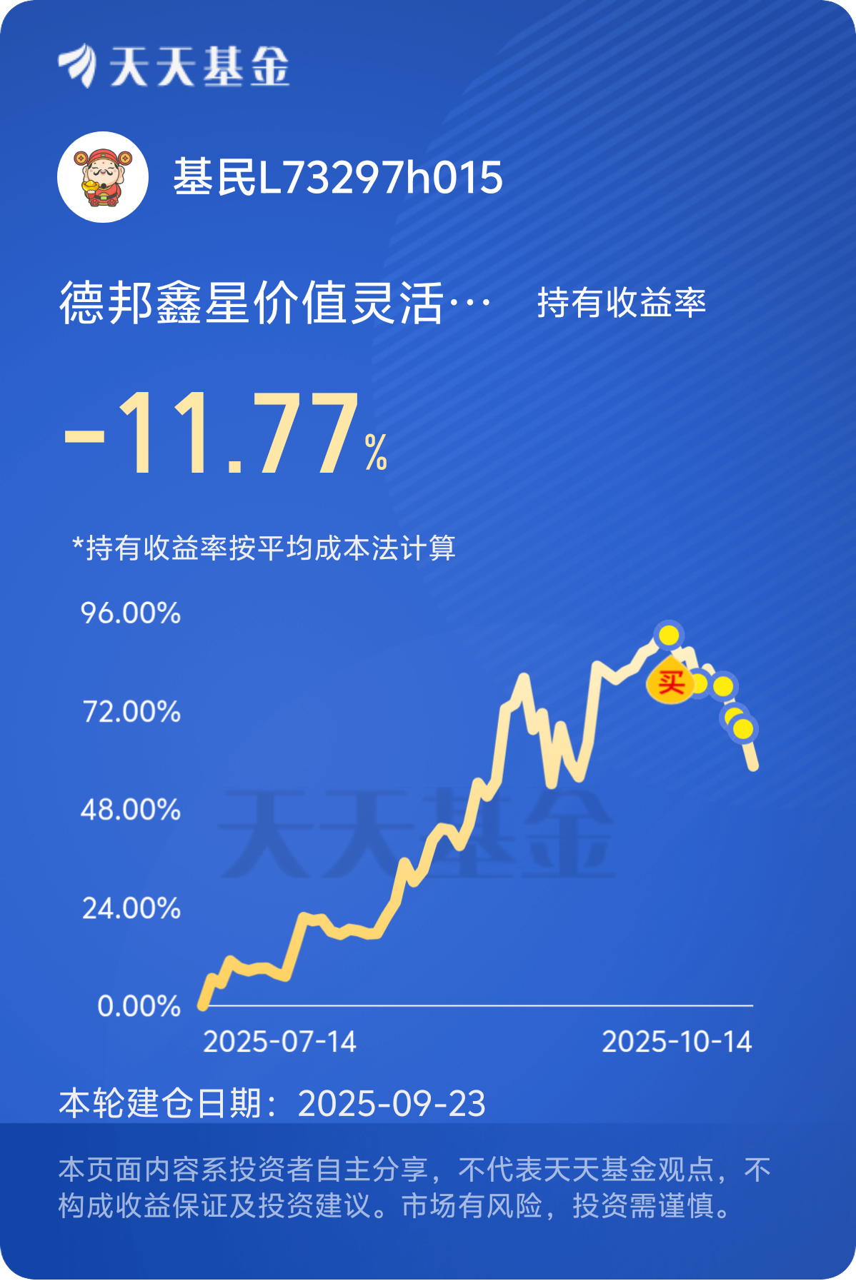 基金的本质就是高位接盘,懂的都懂,如果我这条评论没有被删,证明没有这个事儿,如果你们看不到这个评论了,证明高位接盘这个事儿是事实$德邦鑫星价值灵活配置混合C$ #晒收益# $德邦鑫星价值灵活配置混合C$