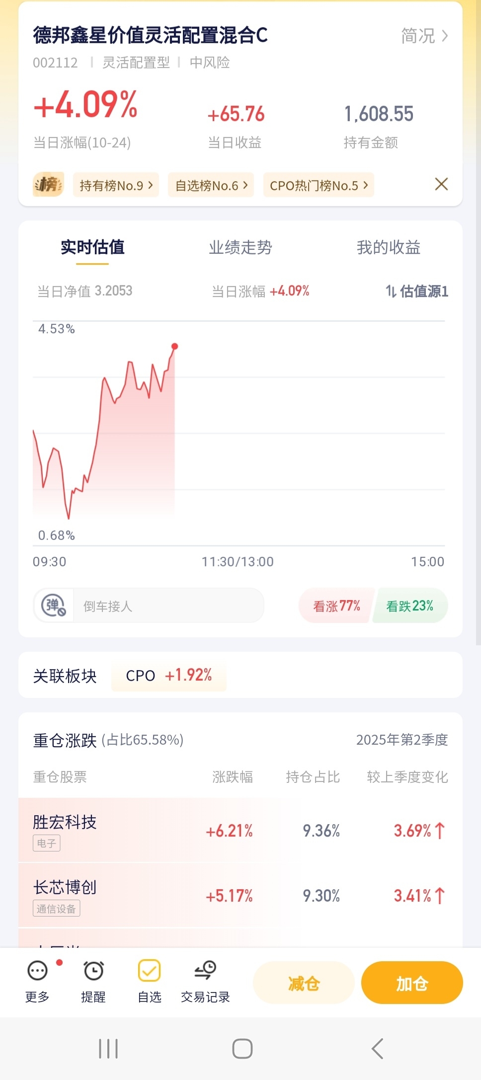 德邦鑫星价值灵活配置混合今日预估涨幅4.09%!