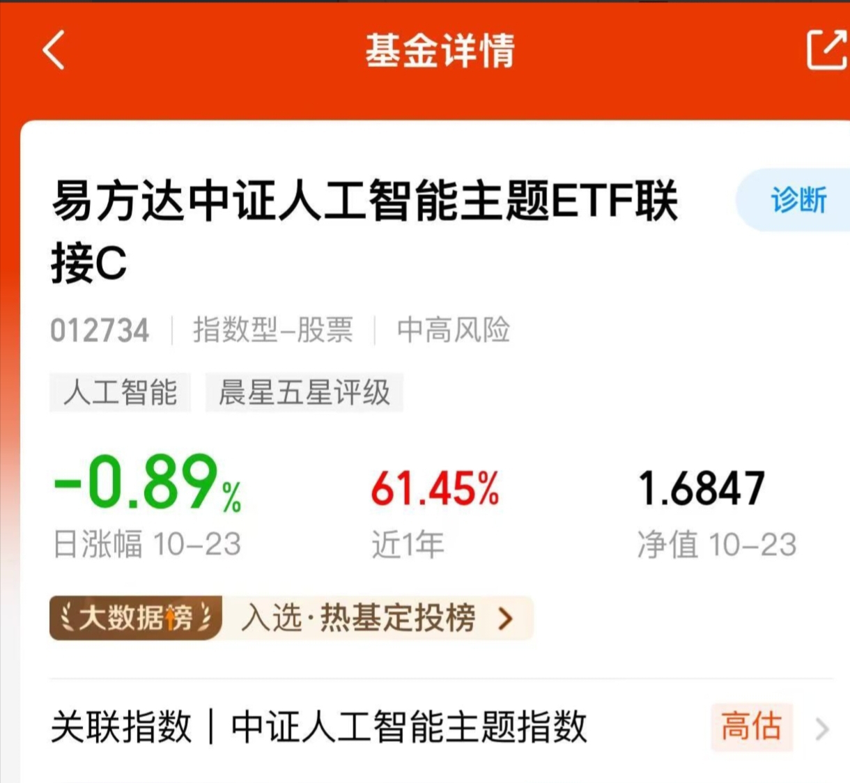 政策红利持续加持,科技主线高歌猛进,AI 涨势让人惊喜$易方达中证人工智能主题ETF联接C$