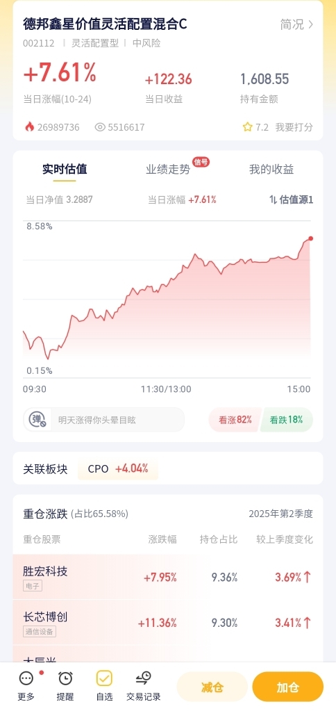 德邦鑫星价值灵活配置混合今日预估涨幅+7.61%!