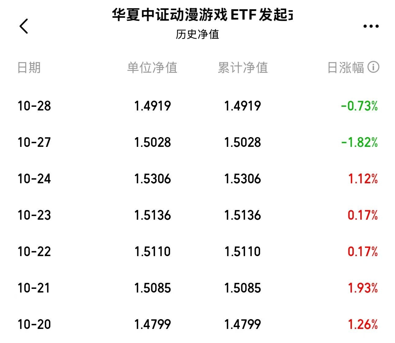 近7天连涨了5天,继续加仓$华夏中证动漫游戏ETF发起式联接C$,龙头股估值还很合理,趁热冲啊,这里今年来涨了40%+,受年轻群体消费升级推动,游戏动漫行业更具备长期配置价值